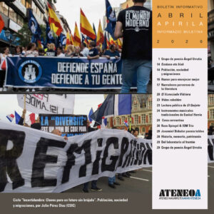 Boletín de Actividades Actividades Marzo ’26 Actividades Abril ’26 Cargar más Próximos eventos Vie 24 Abr 19:00 20:00 Instrumentos musicales tradicionales de Euskal Herria. Juan Mª Beltran Vie 24 Abr 21:00 Cena cervantina Dom 26 Abr 12:00 19:00 Russ Spiegel & ISM Trío Mar 28 Abr 19:00 19:30 Joxemiel Bidador poesia taldea: Ane Zubeldia «Kontra» Mar 28 Abr 19:00 20:00 Claves para un futuro sin brújula: Memoria histórica. Daniel Rico Camps Mié 29 Abr 19:00 Del laboratorio al frontón: el futuro de las cestas de remonte Mié 29 Abr 19:30 Nueva poesía Lun 4 May 11:00 13:00 Atelier literarioa: Sendatzen duten hitzak Ver calendario Donde la cultura se vive: Únete al Ateneo ASÓCIATE Impulsa la cultura: Sé nuestro mecenas. MECENAZGO Viajes Ciudades andaluzas. Puente Foral Ciudades castellano-manchegas. Septiembre Provenza (Francia). 1 – 8 Junio Bulgaria. 1 – 9 mayo Noticias Convocado el XX Premio Internacional de Poesía Ciudad de Pamplona / Iruña hiria poesia saria organizado por Ateneo Navarro y Ayuntamiento de Pamplona12 febrero, 2026 Leer más Exposición Homenaje: Pello Azketa. Fábrica de Gomas (23 enero- 22 de marzo)21 enero, 2026 Leer más Participa en el Certamen de Minicharlas de Ciencia. Próxima charla 28 de Febrero21 enero, 2026 Leer más Cargar más
