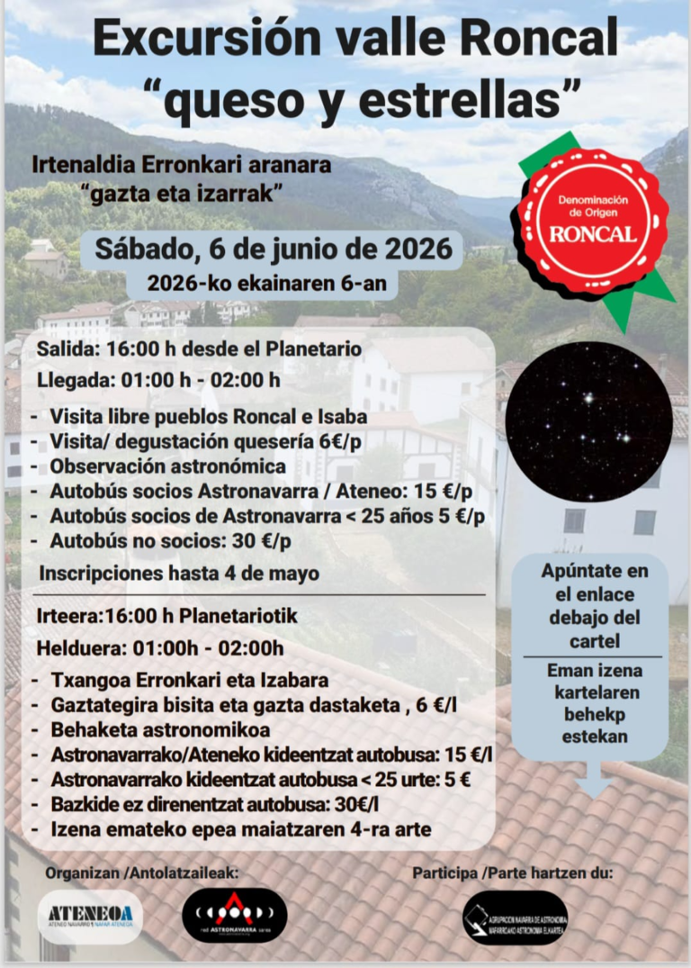 «Queso y Estrellas»: Excursión al Valle del Roncal el sábado 6 de junioPor NC Encomunicación / 24 abril, 2026 APUNTARSE A LA EXCURSIÓN